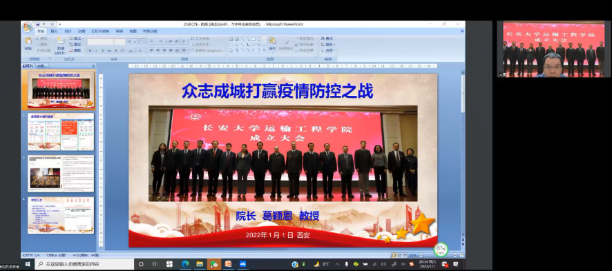 2022年1月1日,是学校抗疫第19天,也是新年第一天,运输所党支部多位教师与同学们一起召开“科学抗疫、奋发学习”主题班会,从学校抗疫政策解读、学生关怀、心理辅导等多个方面对学生进行专项指导,提升学生抗疫信心和学习主动性。