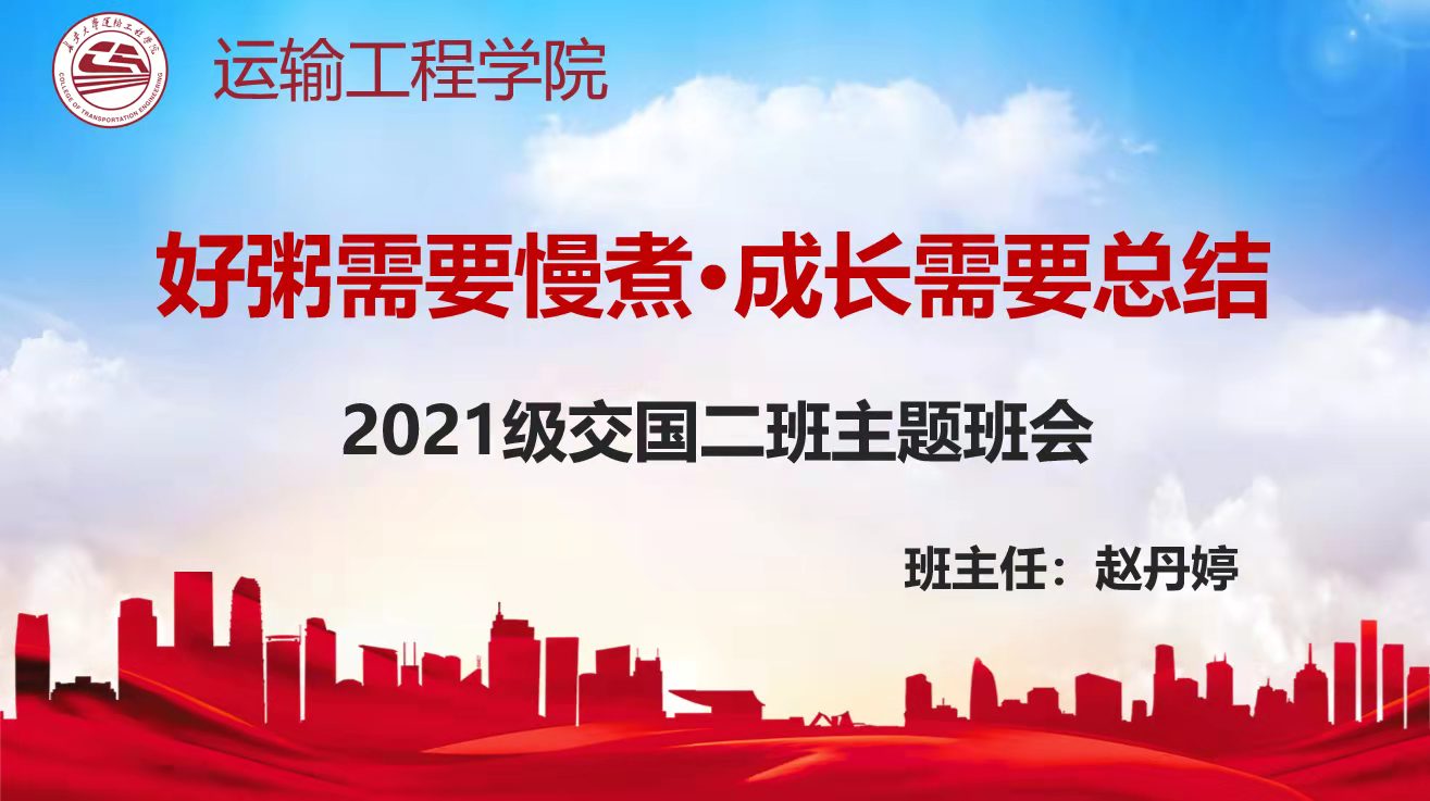 2022年1月10日晚,成人抖音 2021级交通工程(国际工程班)二班召开“好粥需要慢煮,成长需要总结”线上主题班会,本次会议由班主任赵丹婷老师主持,交国二班全体学生参加。