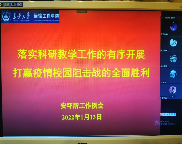 2022年1月13日晚,交通安全与环境研究所全体教师在线上进行了特殊时期疫情防控以及国基金申报、教学科研工作交流会,安环所全体教师参加会议,会议由阎莹副所长主持。