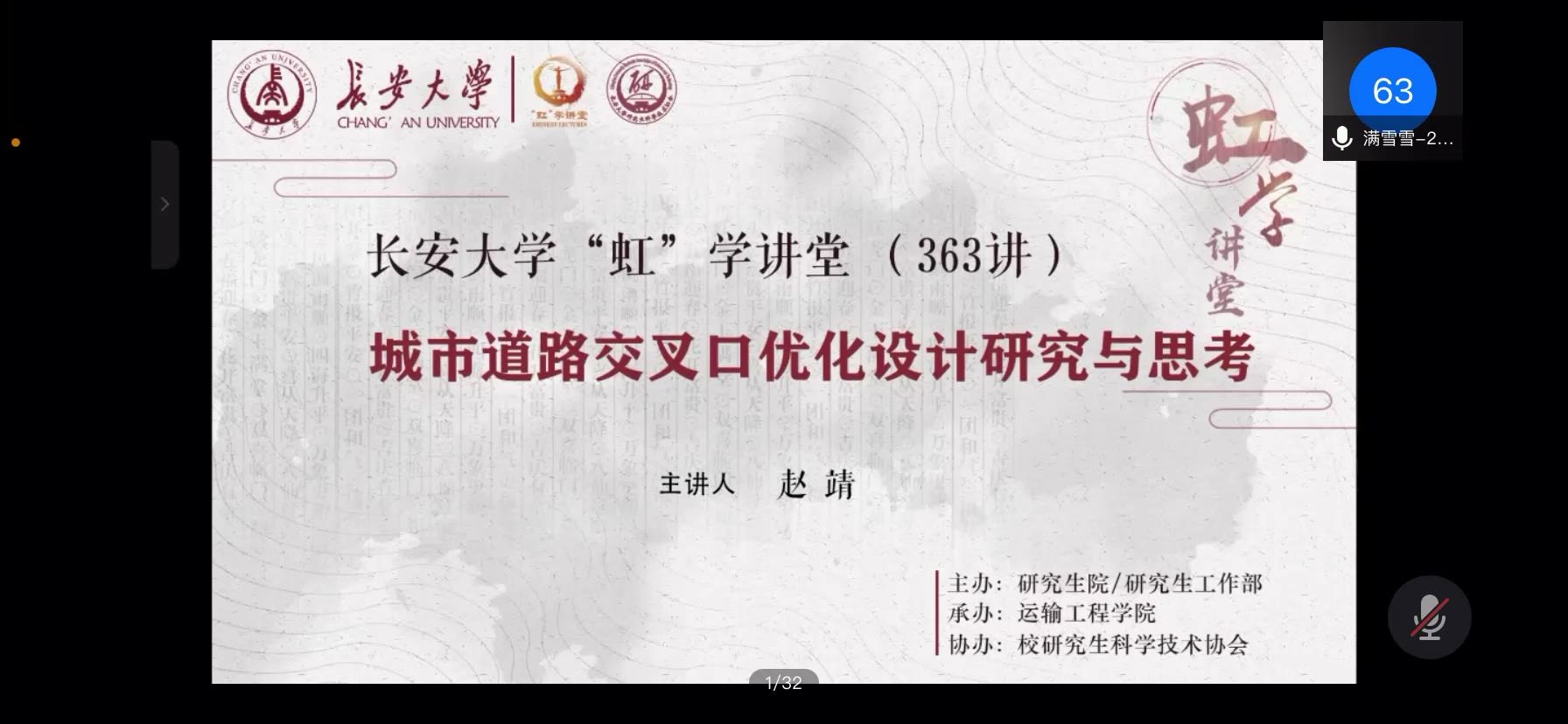 427日下午,由研究生院/研究生工作部主办、成人抖音 承办、院研究生科学技术协会协办的“虹”学讲堂第363线上讲座顺利举办。上海理工大学赵靖教授作了题为“城市道路交叉口优化设计研究与思考”的报告。我校相关学院共计200余名师生参加了此次讲座。