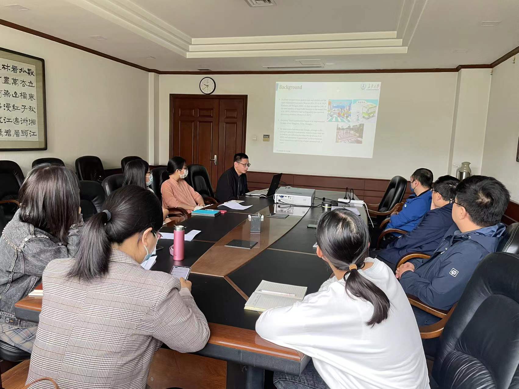汪勇杰副教授汇报结束后,他与运输所部分教师进行了互动交流,参会教师就报告中涉及的视频数据采集参数和方法、视频数据处理算法、后续可深入研究的方向、以及高水平期刊论文发表经验等进行了深入讨论和交流,与会教师纷纷表示受益匪浅,后续也需要通力合作,努力在高水平期刊上发表研究成果。