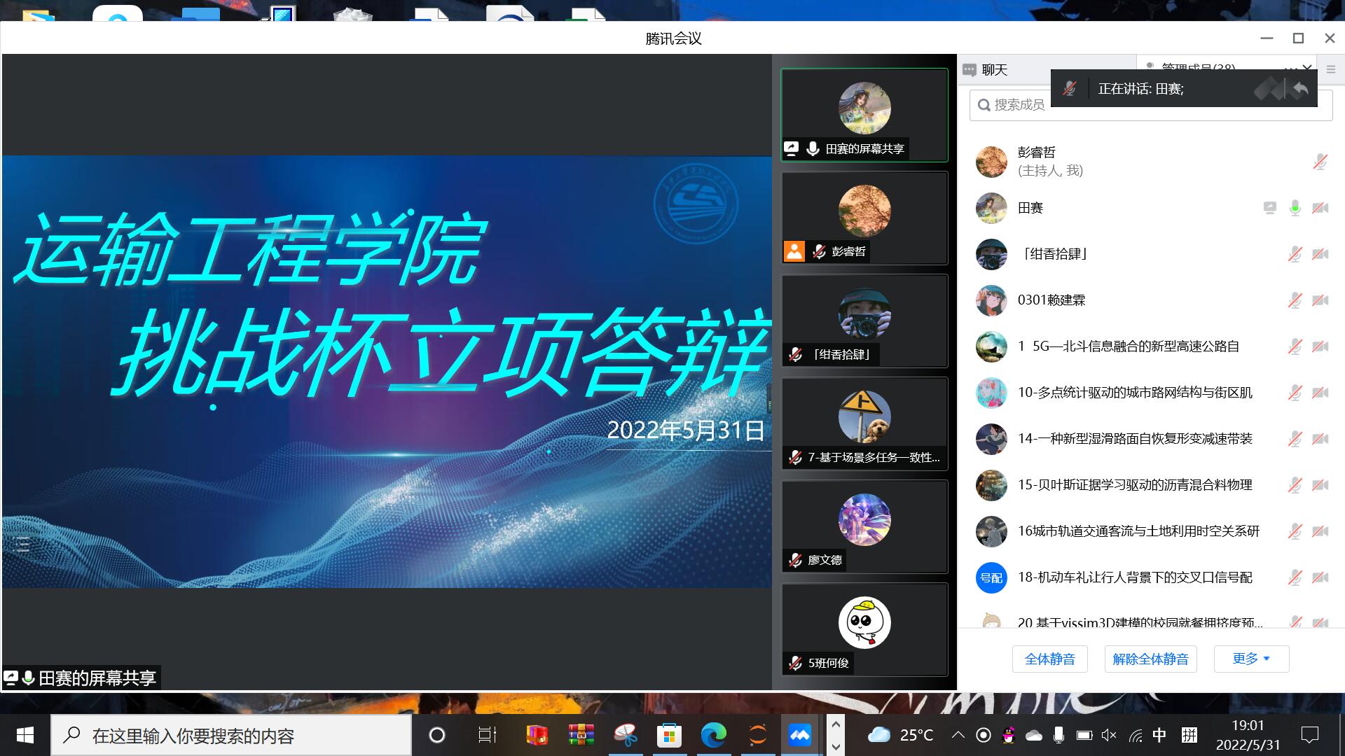 2022年5月31日晚,学院举办2022年挑战杯课赛立项线上答辩。成人抖音 交通工程系王秋玲老师、交通运输系张志俊老师、大数据管理与应用系房建武老师担任答辩会评委。院团委书记贺鑫,团委副书记、科协指导老师金振广以及答辩团队负责人和观摩团近80人参加答辩会。答辩会由成人抖音 科协双创部承办,田赛主持答辩。