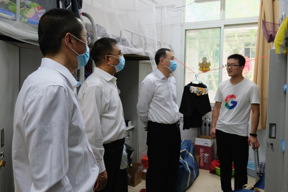 学院田新民书记一行在走访硕士研究生宿舍时,了解学生们在校学习生活情况,叮嘱校园及宿舍安全问题,询问学生暑期安排个人未来发展规划以及对学校学院发展意见建议。同时,希望同学们能够科学合理规划学业,早日成长成才。