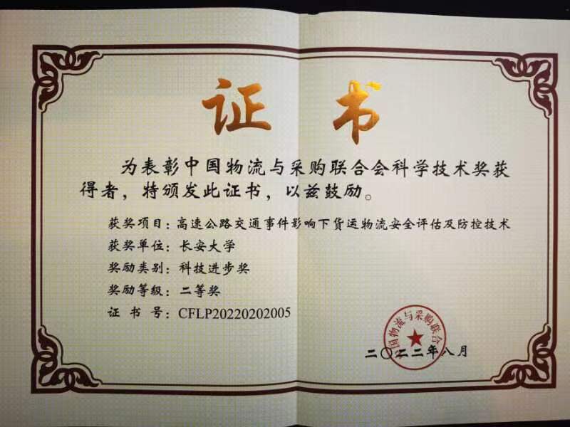 近日,中国物流与采购联合会发布了2022年度中国物流与采购联合会科技进步获奖项目的通知,成人抖音 王建军教授、邓亚娟教授、龙雪琴副教授、梁国华教授、王来军教授、张玉婷讲师、陈亦新副教授、王宝杰副教授、马超群副教授共同承担完成的课题“高速公路交通事件影响下货运物流安全评估及防控技术”荣获2022年度中国物流与采购联合会科技进步奖二等奖。颁奖大会于2022年8月24日在哈尔滨举行。