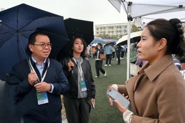 2024届毕业生秋季双向选择洽谈会在北校区朝晖体育场举行。双选会期间,校党委书记陈志坚来到学院就业服务工作点,了解学院毕业生就业情况,指导学院就业工作的开展。陈志坚指出,要充分掌握学生状况及特点,有针对性地开展分类指导,并在考研备考、岗位竞聘等方面持续赋能,帮助学生找到适合自身的发展道路。生涯规划与学生在大学期间的收获密切相关,要加强对学生的生涯规划教育,尽早树立明确的目标并为之奋斗。他希望学院发挥“三全育人”优势,调动专任教师、研究生导师、班主任积极性,不断拓宽加深校企合作,为学生未来发展保驾护航。辅导员要为毕业生插上成长成才的翅膀,“辅”之以能力素养,“导”之以目标方向,“员”之以人生梦想。