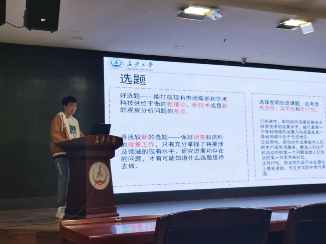 本次宣讲会上,运输学院谌自豪同学针对比赛规则进行了说明,就参赛对象及要求、参赛作品类别、赛程安排、材料报送及要求等方面进行了详细讲解。