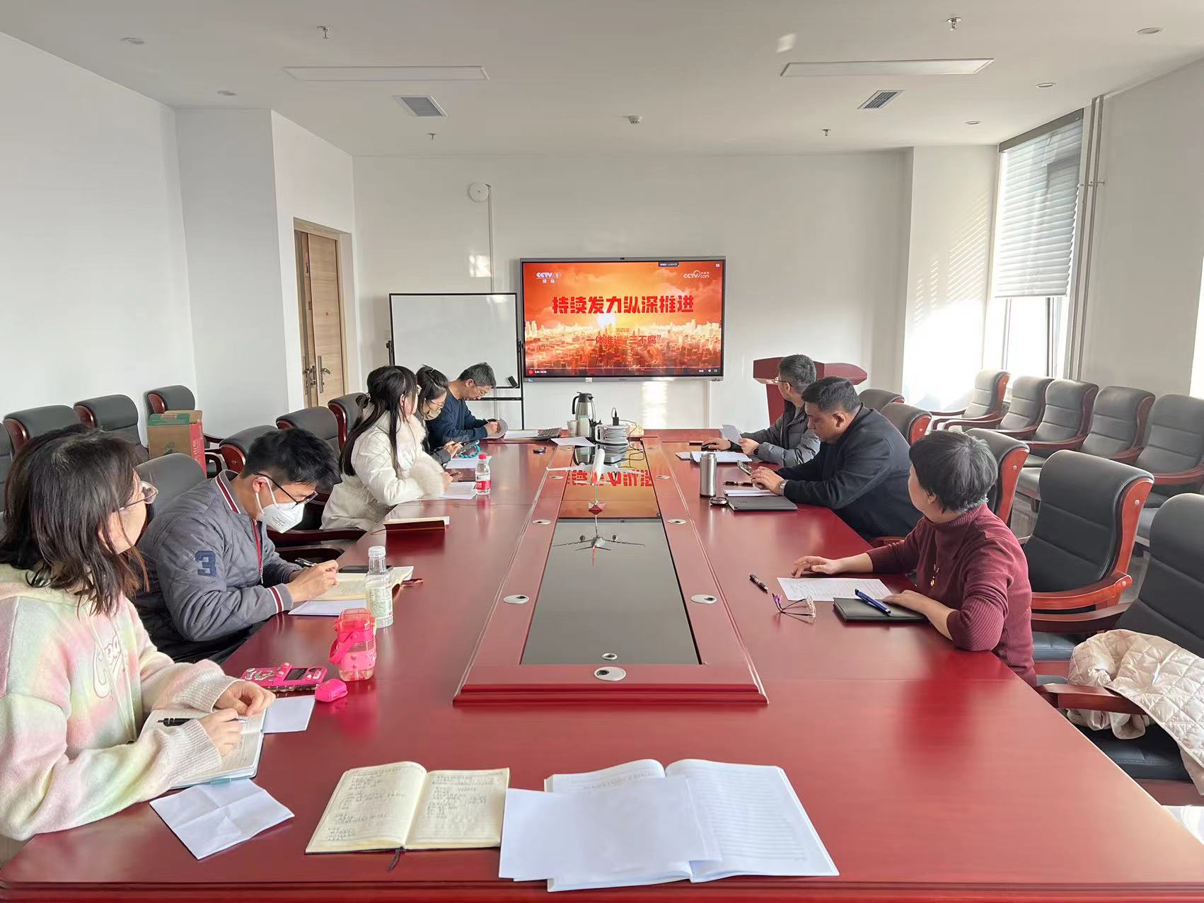会前,支部党员集体观看了电视专题片《持续发力 纵深推进》。