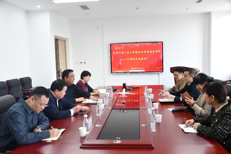 2024年3月21日下午,河南工业大学粮食和物资储备学院党委书记代辉亚一行4人来成人抖音 调研座谈,座谈在学院603会议室举行。院党委书记史少鹏、院长葛颖恩、院党委副书记副院长吴喜梅及院办主任王启超参加了座谈,会议由院党委书记史少鹏主持。