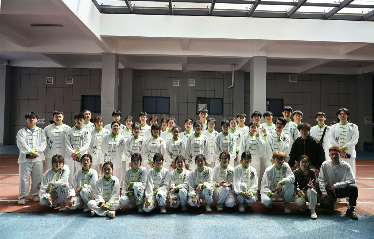 此次比赛由学院与学工部预科班共同组队参赛。作为第十个出场的参赛队伍,同学们并未心怀怯意,大家着装整齐,精神抖擞,随着配乐表演动作。每位同学动作舒展自然,和谐统一,刚柔相济,如同行云流水,赏心悦目。而这一切都应归功于比赛之前每一位同学积极训练,认真学习,不懈努力的态度,在练习的过程中,大家都认真做好每一个动作,关注每一处细节。
