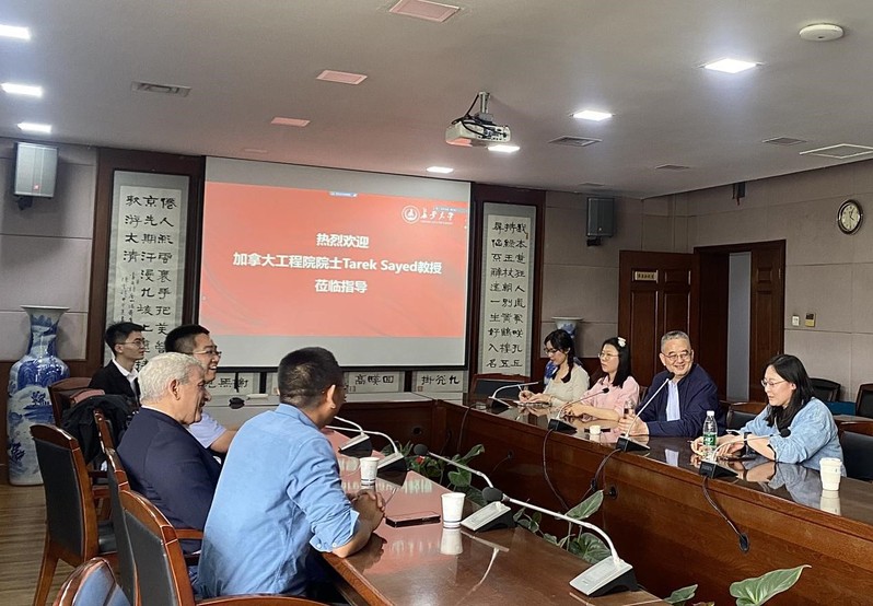 Tarek Sayed院士与我校交通工程研究方向的师生们多年来一直保持了良好的交流,此次活动是对未来合作的一次新的探索。Tarek Sayed与王元庆教授、马书红教授等老师和博士生们先进行了座谈,就基于精准轨迹的技术进行精准碳核算合作研究进行了讨论。