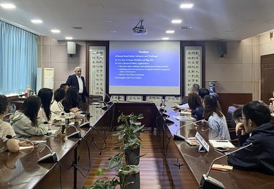 随后,我校师生听取了Tarek Sayed院士基于多源大数据进行交通安全与机动性研究的“Towards A Sustainably Safe Urban Network: The Role of Advanced Technologies and Big data”的线上线下相结合学术讲座,分享了近年其利用边缘摄像头等新技术获取数据,通过数据分析和模型优化来提高道路安全性和效率,开展实时安全评价和优化、极端值模型应用的动态,Tarek Sayed院士强调面对AI技术大爆发的新时代,未来需尝试新方法,以便更好地评估现状并进行预测,并耐心解答了现场与线上师生们的提问。