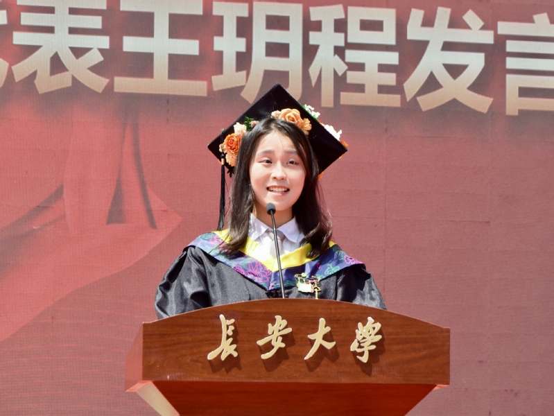 本科毕业生代表王玥程表示,四年时光,宝贵而难忘,感谢母校和师长的谆谆教诲,毕业生们将怀揣祝愿和祝福,肩负使命和担当,用好所学知识,奔赴祖国各地开创崭新未来。