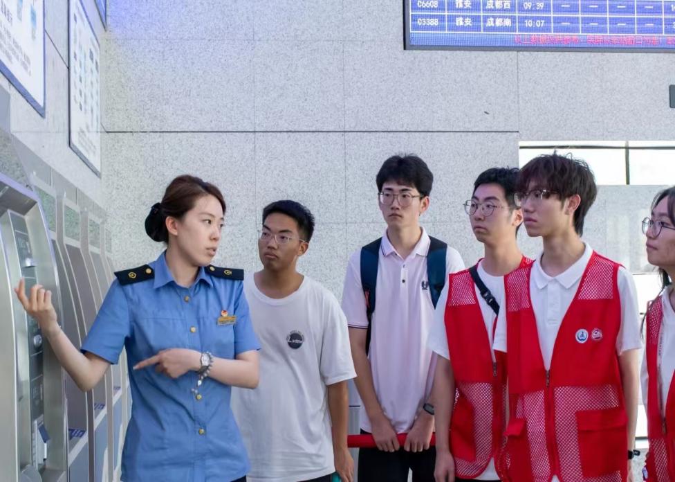 担使命,展现交通学子风采。在成都公交集团金沙枢纽站,实践队不仅学习了公交运营调度指挥中心系统的运作原理,还深入一线,在实际运行中体验公交调度的紧张与有序。在雅安车站,实践队围绕城际列车开行带动乡村振兴等话题展开访谈调查,收集了大量一手资料。经过站长统一培训后,队员们身着“志愿红”,为旅客提供购票指引、信息咨询、秩序维护、行李搬运和卫生清洁等耐心细致的服务,得到了站内外群众和工作人员的好评。
