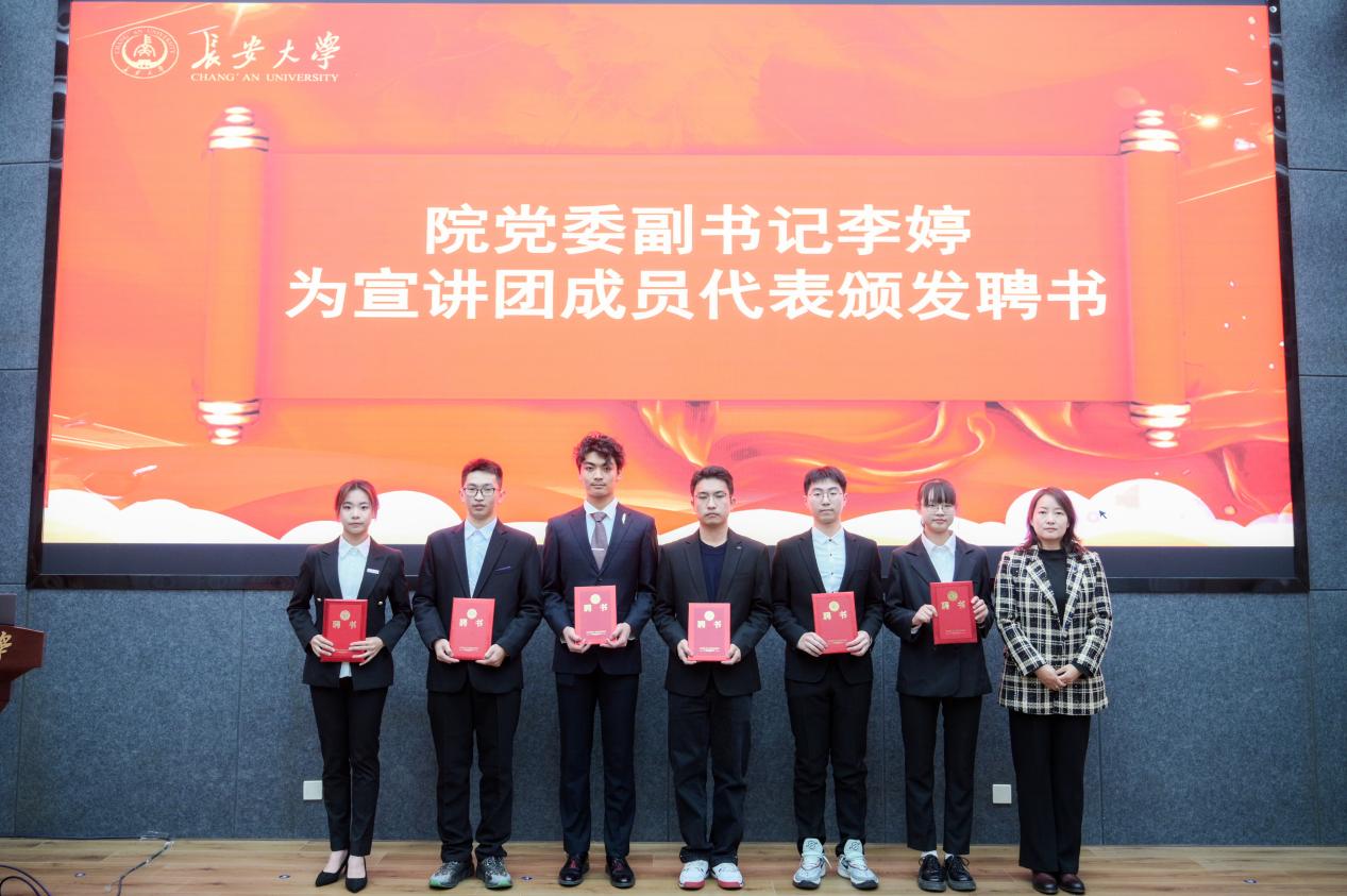成立仪式上,史少鹏为宣讲团授旗,李婷为宣讲团代表颁发聘书