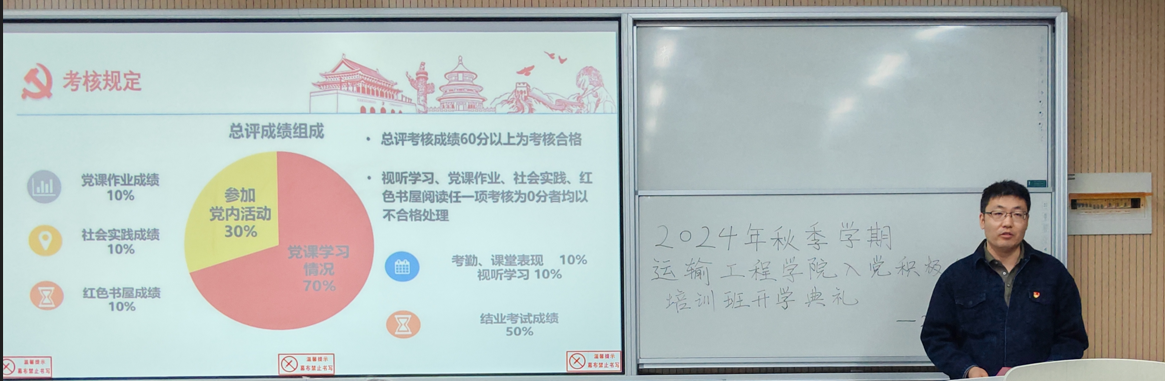 10月23日晚,成人抖音 2024年秋季学期入党积极分子培训班开班典礼在渭水校区WX2103顺利举行。院党委副书记李婷参加典礼,院党课班主任李永春主持典礼。