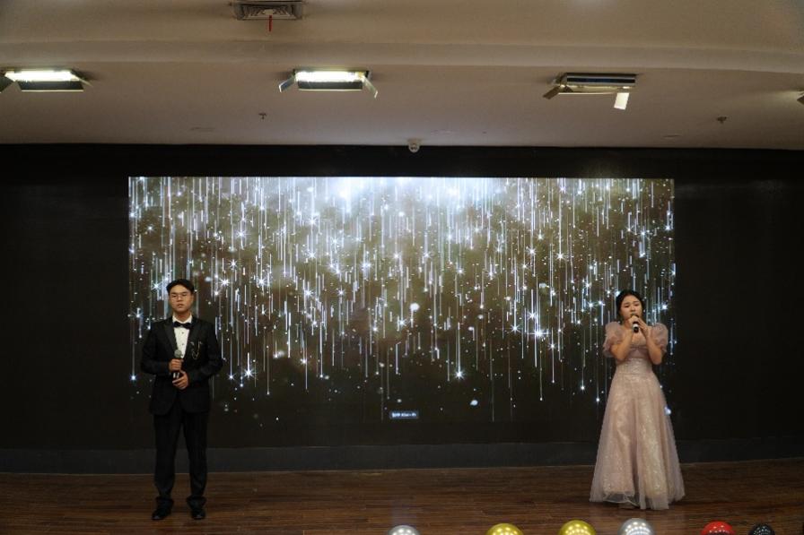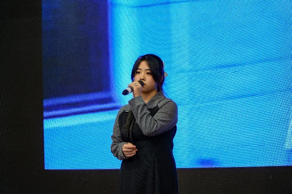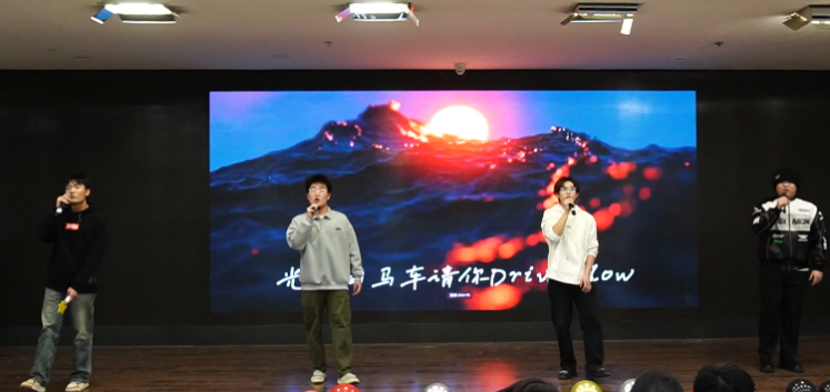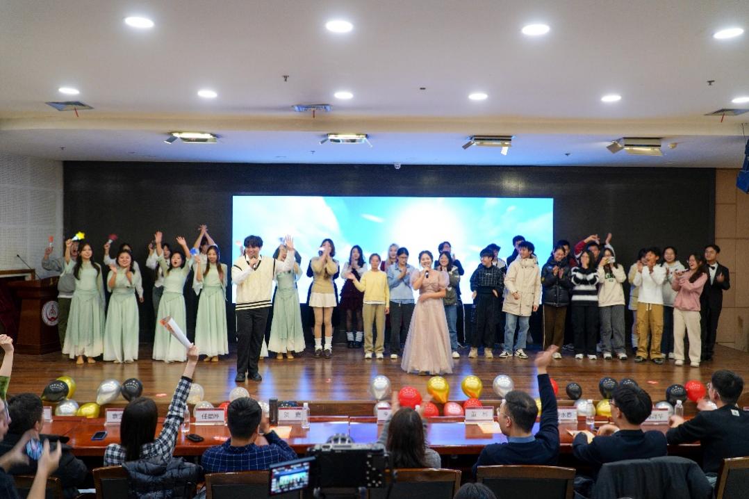 在同学们的呼声中,2024级辅导员携手24届毕业生程阳共同唱响《后来》,歌声中饱含故事感,感叹青春的匆匆流逝。如诗般歌词勾勒青春画面,种种情绪在歌声中铺陈开来。同学们热情捧场,荧光棒手电筒摇曳,气氛十足。