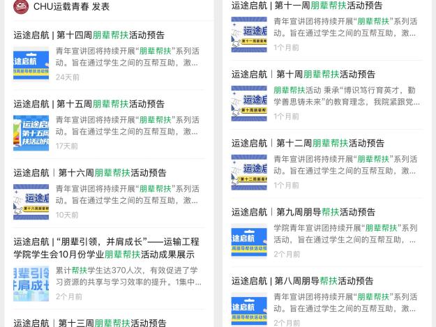 新生入学前,学院精心选拔,为2024级每班配备两名朋辈导师,强化榜样示范引领作用;学院“运途启航”宣讲团面向新生开展保研经验分享会、优秀榜样宣讲活动,并通过学院“CHU运载青春”微信公众号每周发布朋辈帮扶活动预告,激发新生学习热情,营造形成“学先进、赶先进、争先进”的创先争优浓厚氛围;通过“薪火相传,共筑梦想”2024级班团干部交流会,邀请高年级优秀学生干部围绕学业、实践和班级管理等方面开展深入分享,用好“传帮带”助力新生班团干部成长进步;组织“诚信考试,以信取胜”考风考纪警示教育活动,辅导员深入学生课堂查课,以查促学,培育优良学风。