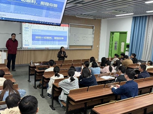 董是老师以《大数据时代交通运输领域职业发展规划》为题,结合本校及同类院校往届毕业生的去向数据,详细分析了本专业的就业趋势,并重点介绍了主要就业单位与典型岗位,涵盖交通工程、交通运输、大数据分析等多个行业。通过具体案例,董是老师向同学们展示了专业技能在不同岗位的应用场景,并提出了针对性的求职建议。