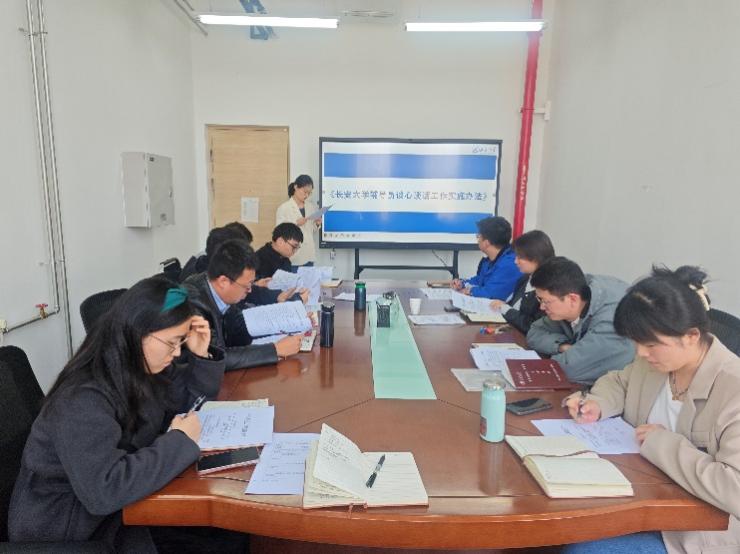 学院党委副书记李婷结合学生工作典型案例,深入分享了谈心谈话工作经验和心得感悟,指出辅导员谈心谈话是思想政治教育的延伸和育人的重要手段,也是检验辅导员能力的试金石,更是架起师生间沟通的重要桥梁。强调要发挥谈心谈话在学生教育管理服务中的关键作用,持续拓展谈话形式,及时有效地发现和化解学生在日常生活中产生的问题和困惑,为学生的思想成长、学业发展和心理健康保驾护航。肖宇领学了《成人抖音 辅导员谈心谈话工作实施办法》,从谈心谈话对象及方式、组织与实施、反馈与跟踪和保障与考核等方面和全体辅导员共同学习了文件要点。
