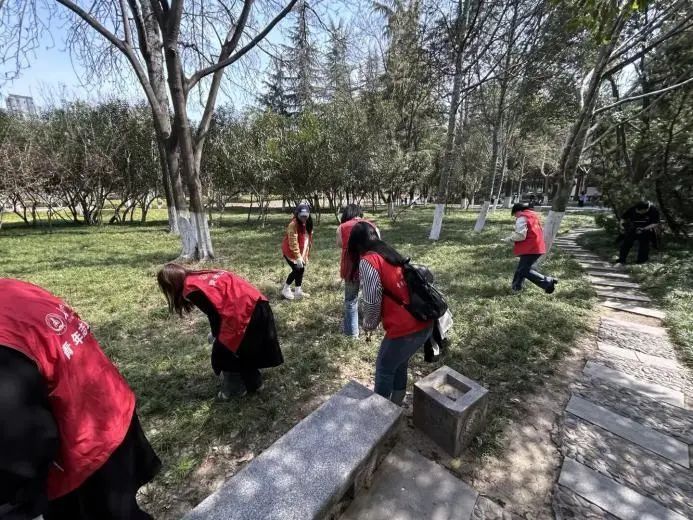 下午13时,学院2024级学硕党支部书记常筱彤简要介绍活动意义,强调“环保+党建”融合价值。青年党员们身着统一志愿者背心,分组开展环保行动。在丰庆公园及周边步道,志愿者们手持夹子、垃圾袋,捡拾塑料瓶、烟头等废弃物,并分类投放至指定垃圾桶。