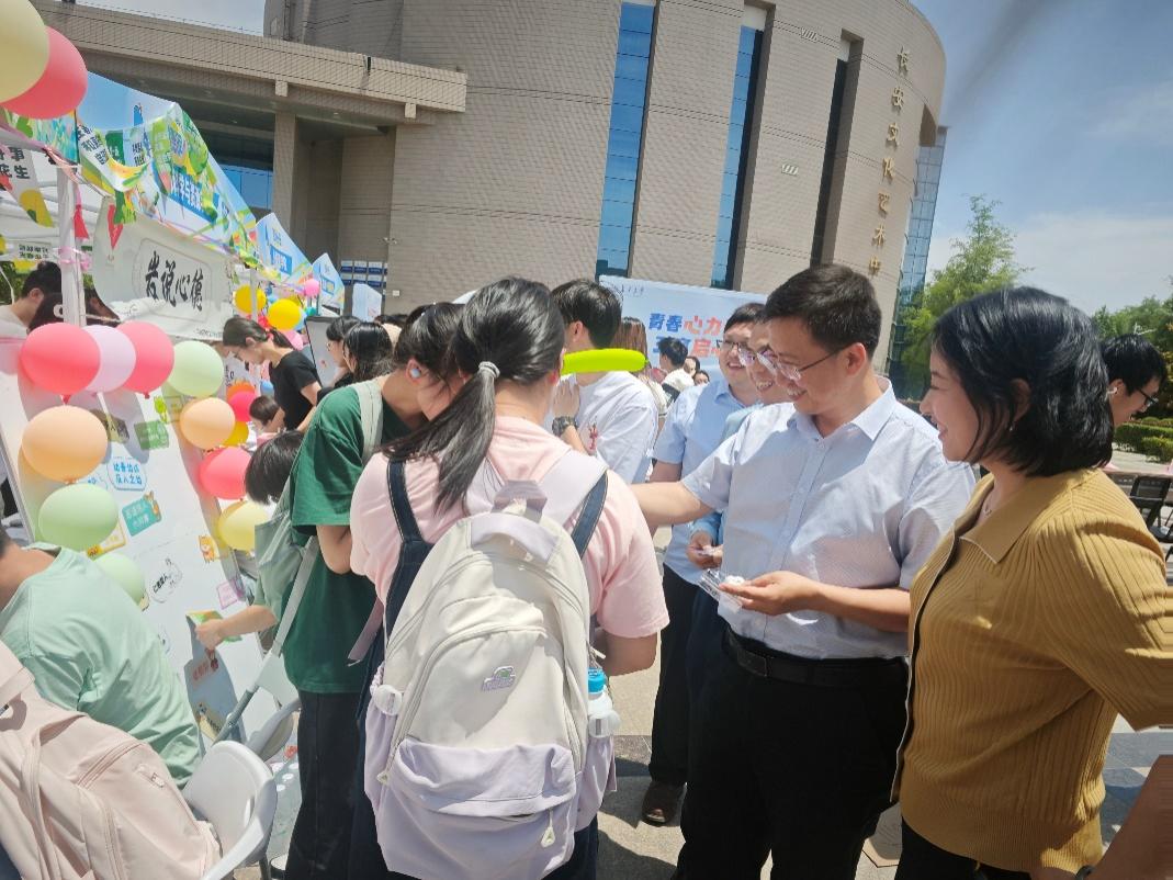 渭水畔心海晴澜,校园中欢情舒展。5月23日中午,成人抖音 第2个全国学生心理健康宣传教育月主题活动暨“3·25-5·25”大学生心理健康教育季实践活动展示活动在北校区树蕙园广场举行。校党委副书记李文雄一行来学院活动现场指导心理工作。