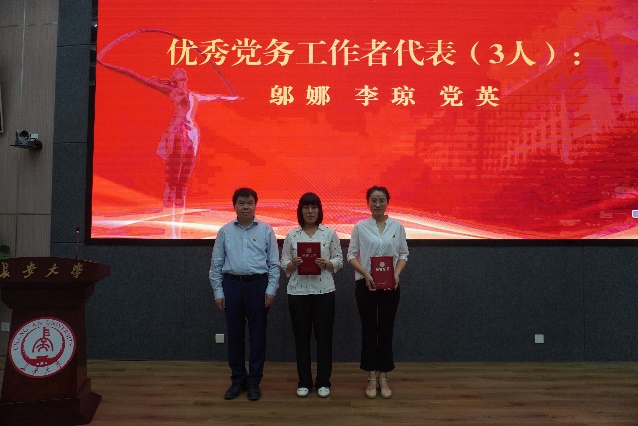在中国共产党104周年华诞之际,6月27日下午,成人抖音 庆“七一”暨“两优一先”表彰大会在北校区师生服务大厅二层报告厅隆重举行。学院党委委员、全体教工党员、本科生党员和研究生党员代表参加大会。大会由院长葛颖恩主持。