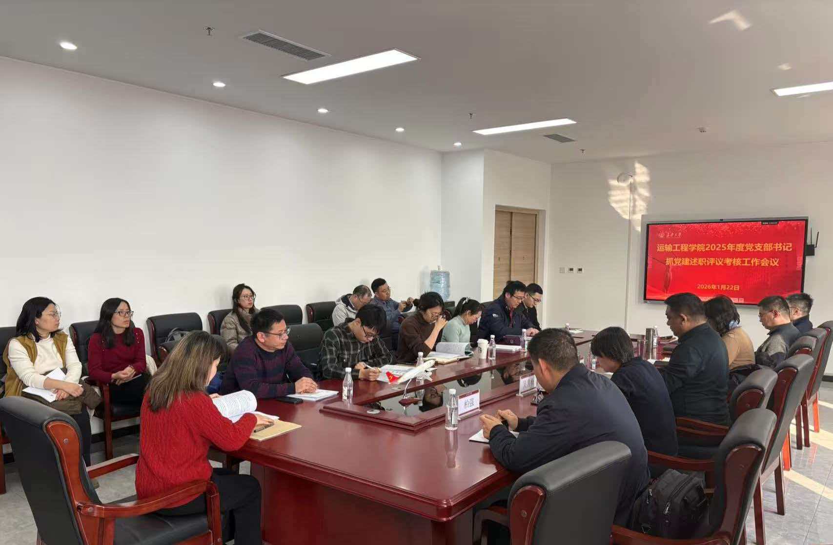 1月22日下午,学院在603会议室召开2025年度教工党支部书记抓党建述职评议考核工作会议。学院党委委员、纪委委员、教工支部书记、副书记、支委、相关科室负责人参加会议。会议由学院党委副书记、副院长、纪委书记吴喜梅主持。